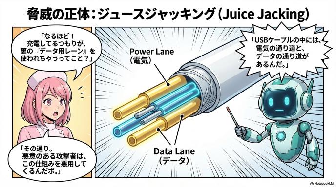 - 公共のUSBポートに潜むリスク(ジュースジャッキング)の正体